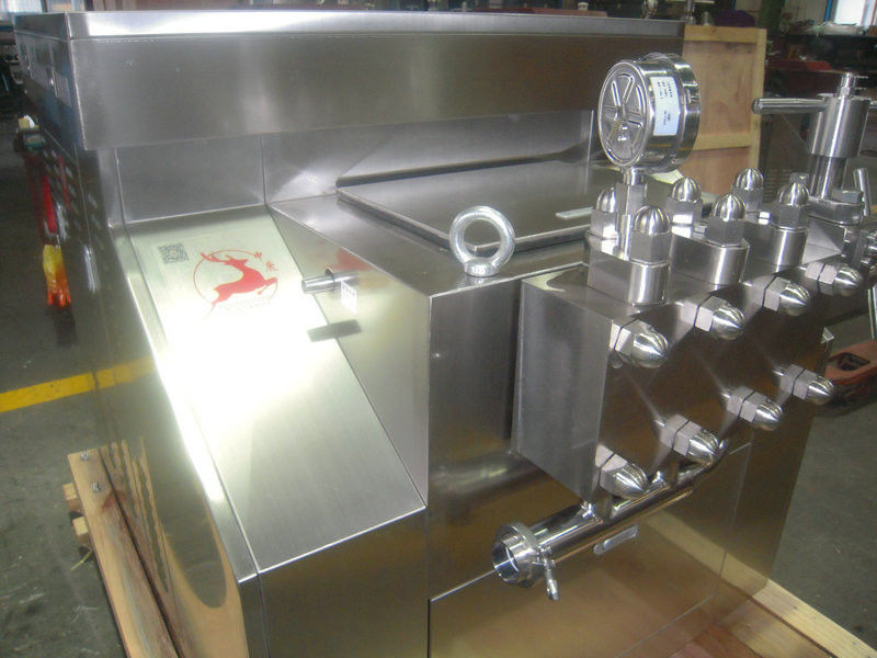 ♦ Many kinds of material such as milk or bean milk can be homogenized under high pressure to considerably thin the fat balls in the milk liquid, which makes the products be easy to be digested and absorbed, and improve the edibleness.
