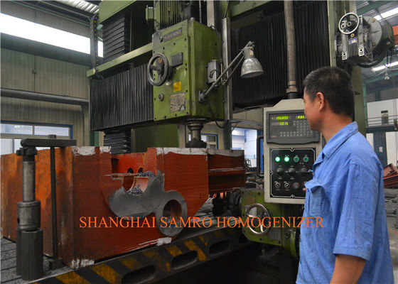 When product is flowing through the adjustable valve, the particles or droplets present in mixed fluids with high pressure will be subdivided into the very smallest sizes ( φ =0.01 - 2 μm, average φ ≤ 1 μm) because of pressure decrease, expansion, explosion, cutting and high-speed impacting etc., then the emulsions or dispersion could be produced. Through homogenizing the stablity, easy-absorb, long-life, taste and color etc. of product could be realized. Therefore, homgenizer has been recognized as the best equipment of the dispersion and emulsion in the century.